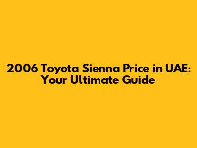 Hey guys! So, you're curious about the 2006 Toyota Sienna price in the UAE? You've come to the right place! Finding the right minivan can be a real hassle, so let's break down everything you need to know about the 2006 Sienna, from its price range to what to look out for when buying one in the Emirates. This guide is designed to help you navigate the used car market with confidence, ensuring you get the best value for your money. We'll delve into the factors that influence the price, common issues, and things to consider before making a purchase. Whether you're a seasoned car buyer or new to the scene, this article will equip you with the knowledge to make an informed decision. Buckle up, and let's dive into the world of the 2006 Toyota Sienna in the UAE!