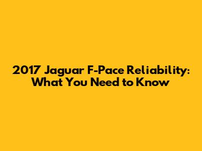 2017 Jaguar F-Pace: Is It Reliable?