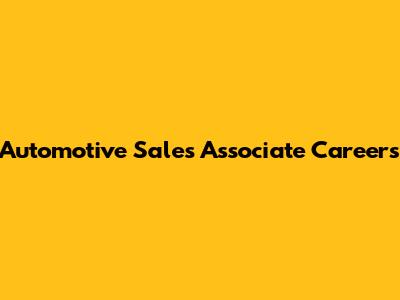 Automotive Sales Associate Careers