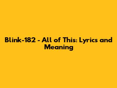 Blink-182 - All Of This: Lyrics And Meaning