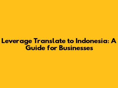 So, there you have it, guys. Leveraging translation is not just about translating words; it's about building bridges, creating connections, and opening doors to a world of opportunities in Indonesia. By investing in high-quality translation and localization, you're investing in your business's future success. Remember to choose the right translation services, localize your content effectively, and measure your results. Good luck, and happy translating!