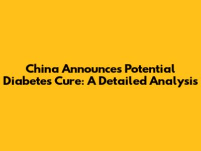 China Announces Diabetes Cure: Breakthrough?