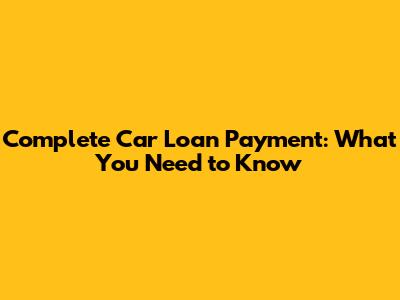 Complete Car Loan Payment: What You Need To Know