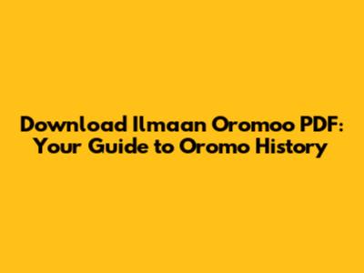 Download Ilmaan Oromoo PDF: Your Guide To Oromo History