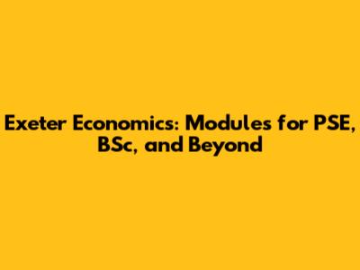 Exeter Economics: Modules For PSE, BSc, And Beyond