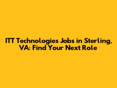 ITT Technologies Jobs In Sterling, VA: Find Your Next Role