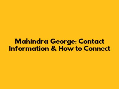 Mahindra George: Contact Information & How To Connect