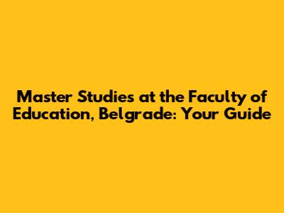 Master Studies At The Faculty Of Education, Belgrade