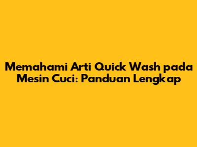 Memahami Arti Quick Wash Pada Mesin Cuci: Panduan Lengkap