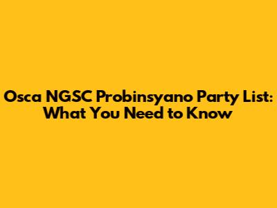 Osca NGSC Probinsyano Party List: What You Need To Know