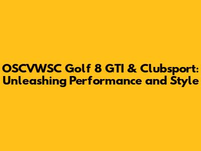 Understanding the OSCVWSC Golf 8 GTI & Clubsport: A Deep Dive