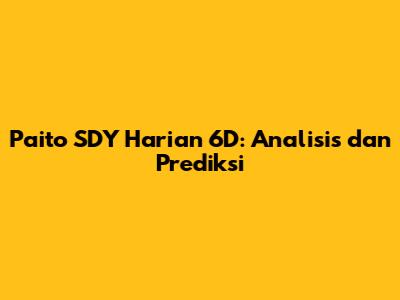 Paito SDY Harian 6D: Analisis Dan Prediksi
