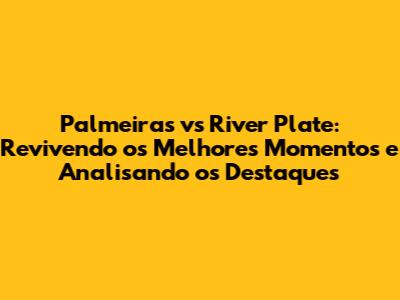 Palmeiras Vs River Plate: Momentos Épicos E Análises