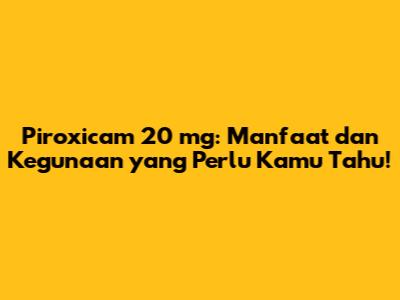 Obat piroxicam 20 mg adalah jenis obat antiinflamasi nonsteroid (NSAID) yang umum digunakan untuk mengatasi berbagai masalah kesehatan. Piroxicam bekerja dengan mengurangi produksi prostaglandin, senyawa dalam tubuh yang menyebabkan peradangan dan nyeri. Jadi, kalau kamu lagi merasa sakit atau nyeri, bisa jadi piroxicam adalah solusi yang tepat. Yuk, kita bahas lebih lanjut tentang manfaat dan kegunaan obat ini!
