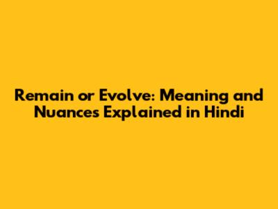 Remain Or Evolve: Meaning And Nuances Explained In Hindi