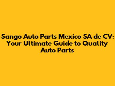 Sango Auto Parts Mexico: Your Guide To Quality Auto Parts