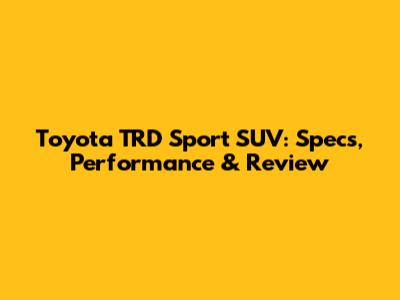 Toyota TRD Sport SUV: Specs, Performance & Review